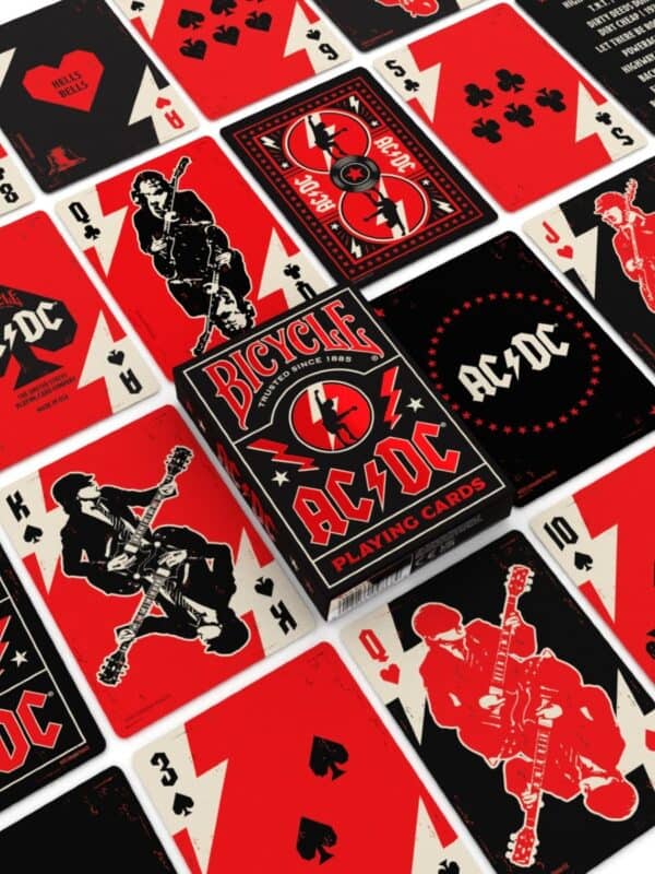 Bicycle AC/DC kortstokk er den ultimate kortstokken for både rockefans og kortentusiaster. Inspirert av det legendariske bandet AC/DC, kombinerer denne kortstokken klassisk spillekvalitet med ikonisk design. Hvert kort er nøye utformet med detaljer og referanser til bandets visuelle stil, noe som gjør Bicycle AC/DC kortstokk til et perfekt samlerobjekt så vel som et funksjonelt spillverktøy.