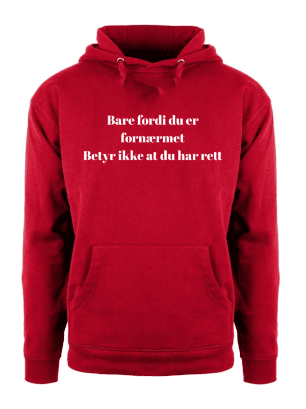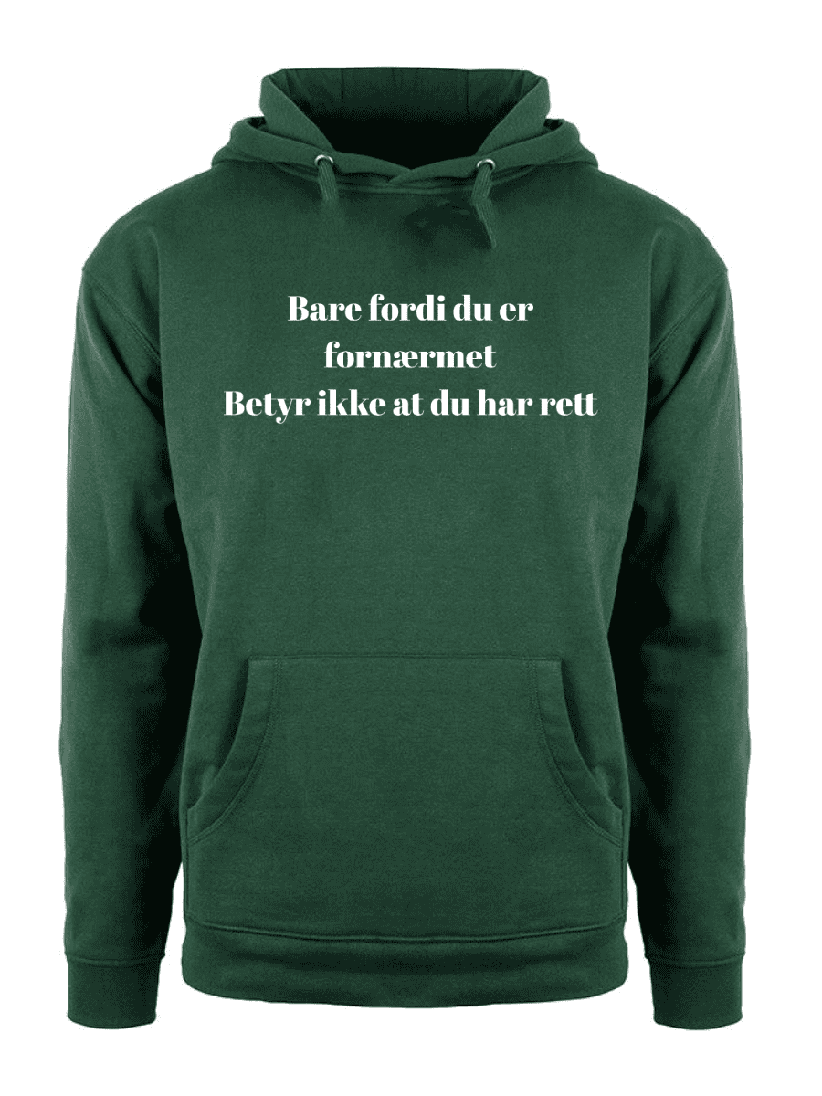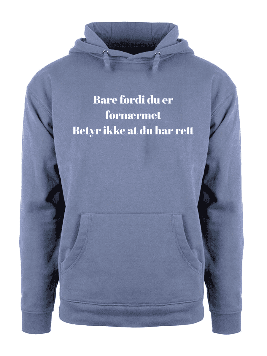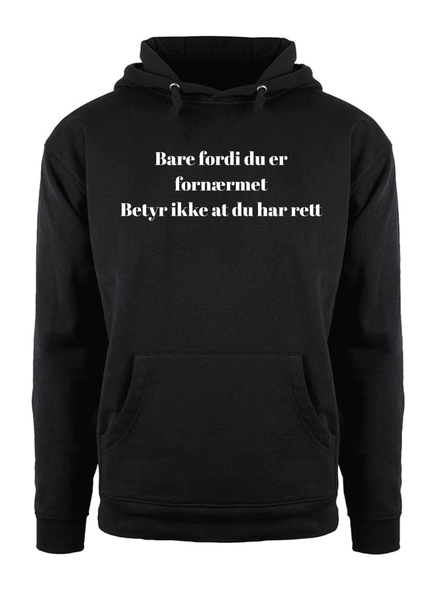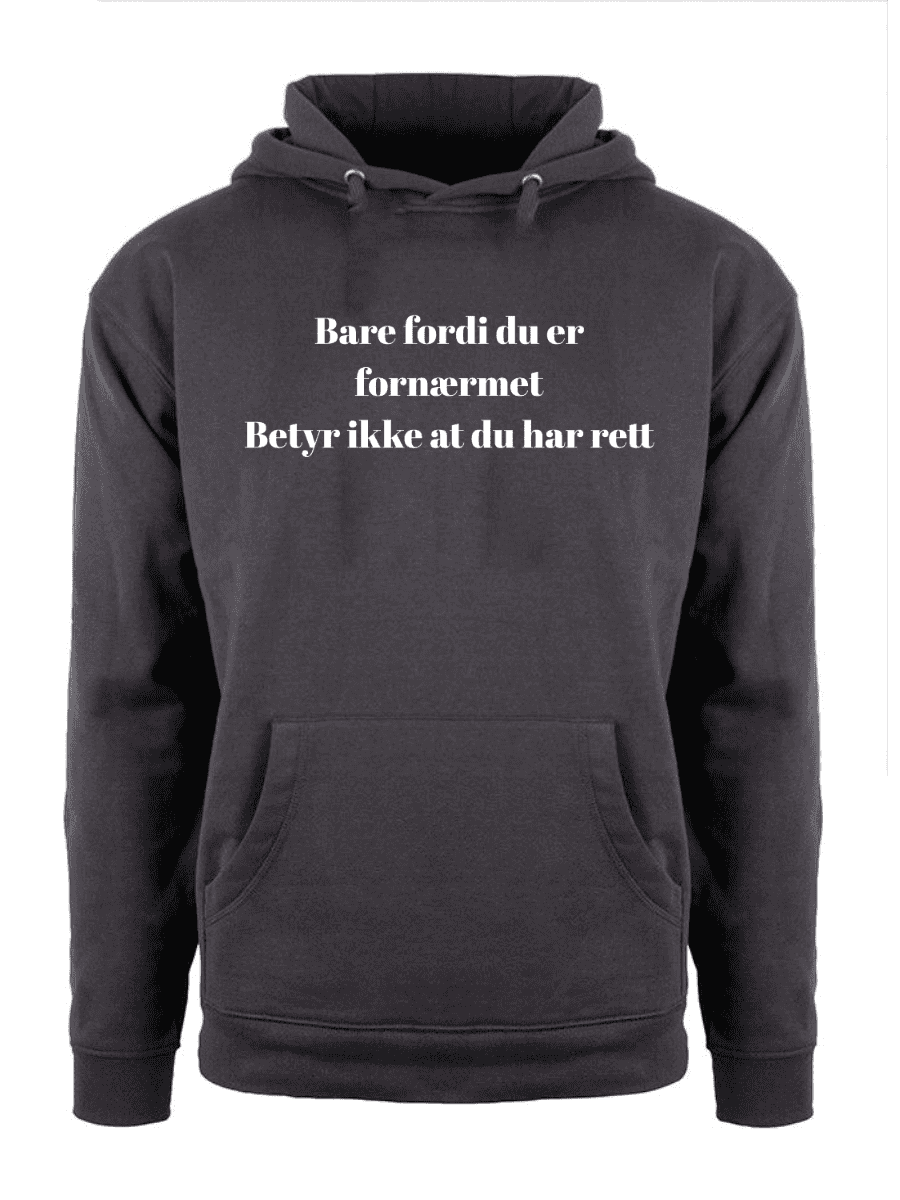 I en tid der alle kan bli fornærmet over alt, er det på tide å si det som det er. Med «Bare fordi du er fornærmet betyr ikke at du har rett» hettegenser tar du et standpunkt for sunn fornuft og ytringsfriheten. Dette er en hettegenser for deg som ikke lar følelser overstyre fakta.
