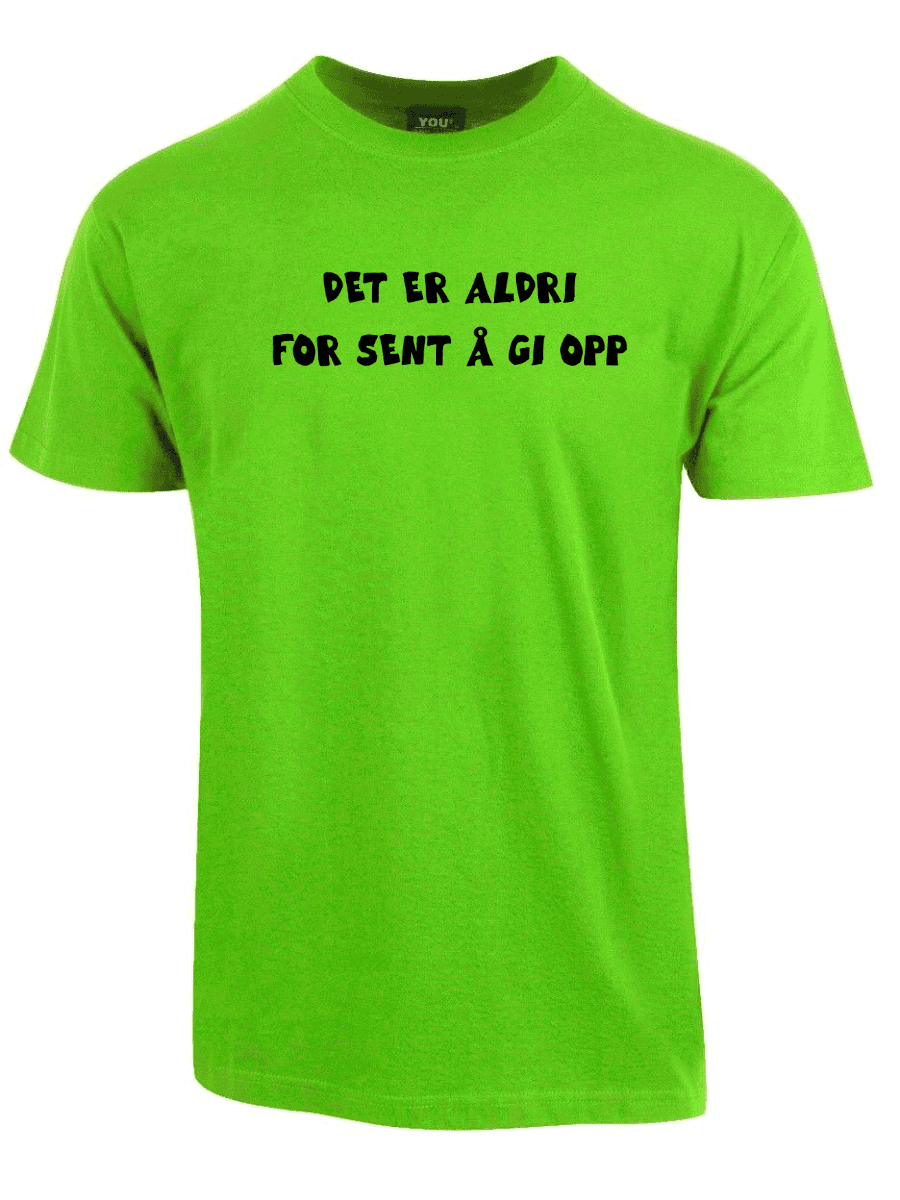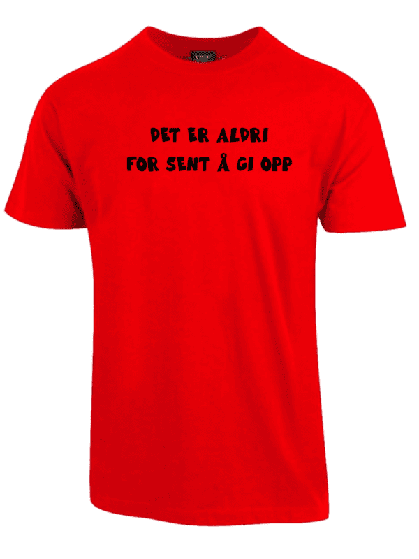T-skjorten fungerer i de fleste sammenhenger. På jobb når prosjektet burde vært skrotet for seks måneder siden. På trening når du har prøvd yoga i to år uten å like det. I vennegjengen når folk holder på med ting de hater, men føler de må fullføre.