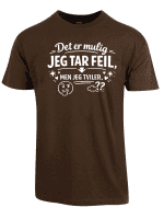 Dette er selvironi møter selvtillit. Du er teknisk sett ydmyk nok til å innrømme at feil kan forekomme, men realistisk nok til å innse at det nesten aldri skjer med deg. Med denne t-skjorten eier du din track record av å ha rett – med et lite, sjarmerende glimt av ironi.