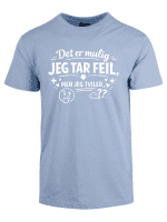 Designet er enkelt og kraftfullt – sort eller hvit t-skjorte med tydelig, lesbar tekst som ikke trenger forklaring. Dette er ikke subtil humor – det er et statement om at selv om du teknisk sett kunne ta feil, så er sannsynligheten mikroskopisk. Perfekt for dem som har statistikk, erfaring og sunn fornuft på sin side.