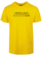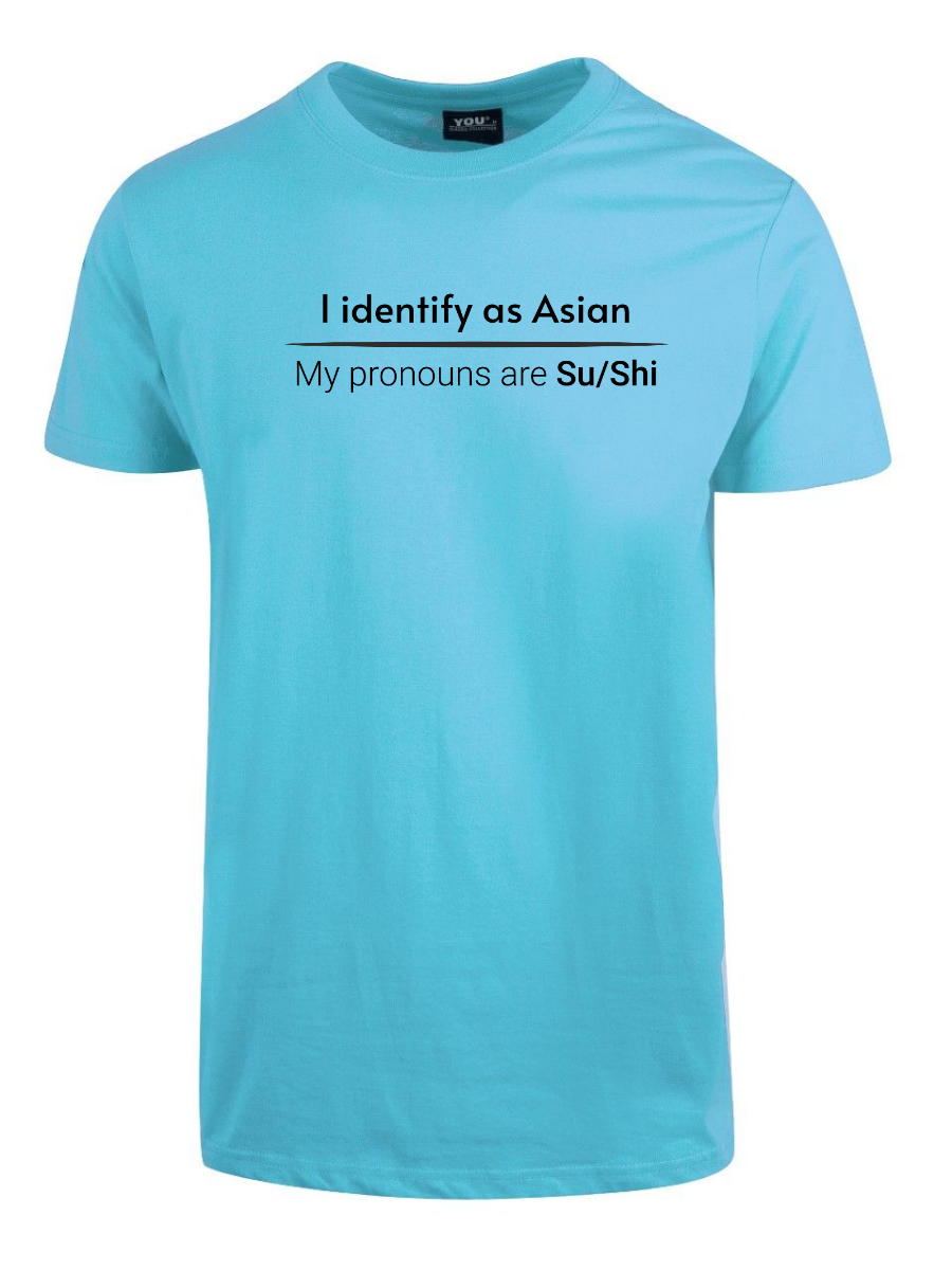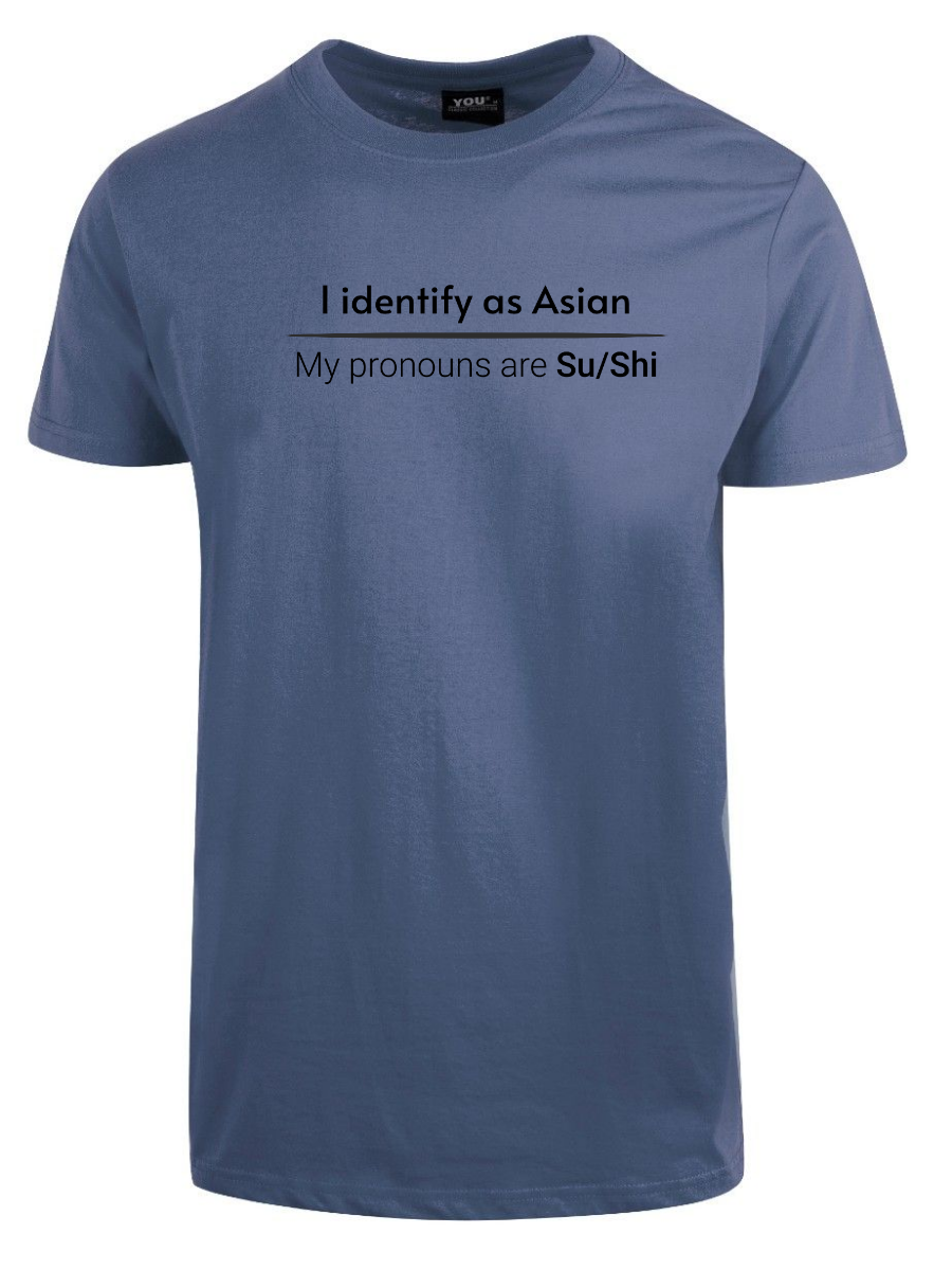 I en tid der folk kan identifisere seg som hva som helst og finne på egne pronomen, hvorfor ikke gå all in? Med «I identify as Asian. My pronouns are Su/Shi» tar du pronomen-galskapen til sin logiske, absurde konklusjon. Dette er satire på sitt beste – humor som utfordrer dagens identitetspolitikk med et glimt i øyet.