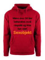 Endelig! En hettegenser som sier det alle menn over 50 tenker. Med «Menn over 50 bør behandles med respekt og ikke kun som sexobjekt» kan du endelig sette ord på den daglige kampen mot objektiviseringen.