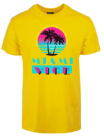Laget av høykvalitets bomull som er myk, komfortabel og perfekt for varme sommerdager (eller når du bare drømmer om dem). Trykket er skarpt og holdbart, og bevarer den retro-estetikken vask etter vask. T-skjorten har klassisk passform som passer alle – perfekt til festivaler, sommerdager eller nostalgiske TV-kvelder.