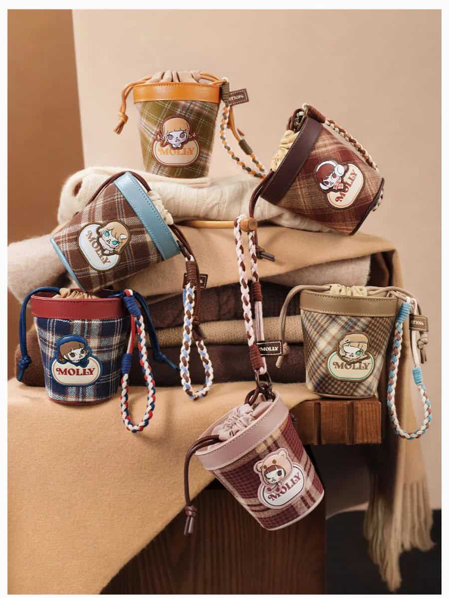 Dette er samleobjekt som møter mote. Molly-karakteren er designet av Kenny Wong, og hver veske er basert på hennes ikoniske vinteroutfits fra Winter Fit Check-serien. Ikke bare en logo printet på en generisk veske – hele designet er tilpasset hvert spesifikke vinterantrekk.