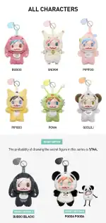 Hver Monster Baby kommer i blind box med seks regulære design: Buboo, Snokm, Pipifoo, Pipooo, Powa og Goolili. Alle har unike detaljer – intrikkert broderi, distinkte outfit-detaljer og personligheter som skiller dem fra hverandre. Secret editions er Buboo (Black) og Pooda Pooda med typisk 1/144 sjanse. De er selvfølgelig mer verdt på annenhåndsmarkedet.