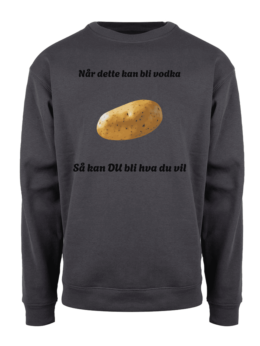 Motivasjon kan komme fra de mest uventede steder. Med «Når dette kan bli vodka så kan DU bli hva som helst» collegenser får du inspirasjon fra en helt alminnelig potet – som har oppnådd storhet gjennom destillasjon og vilje.