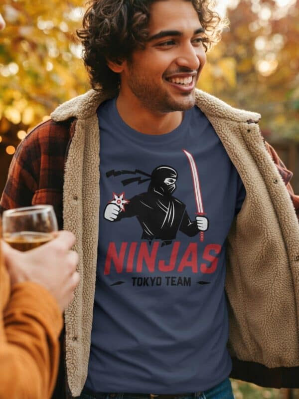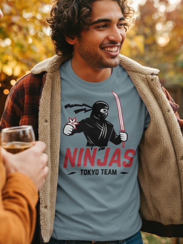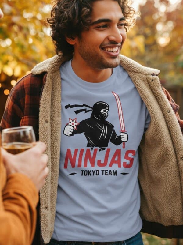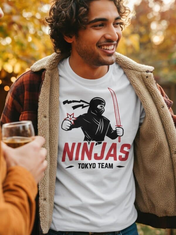 Stoffet er mykt, solid og komfortabelt – akkurat slik en ekte ninja ville foretrukket det (om de brukte T-skjorte). Passformen er unisex, og Ninjas Tokyo Team T-skjorte kommer i mange størrelser og farger, slik at du kan velge om du vil gå all black eller vise mer kontrast.