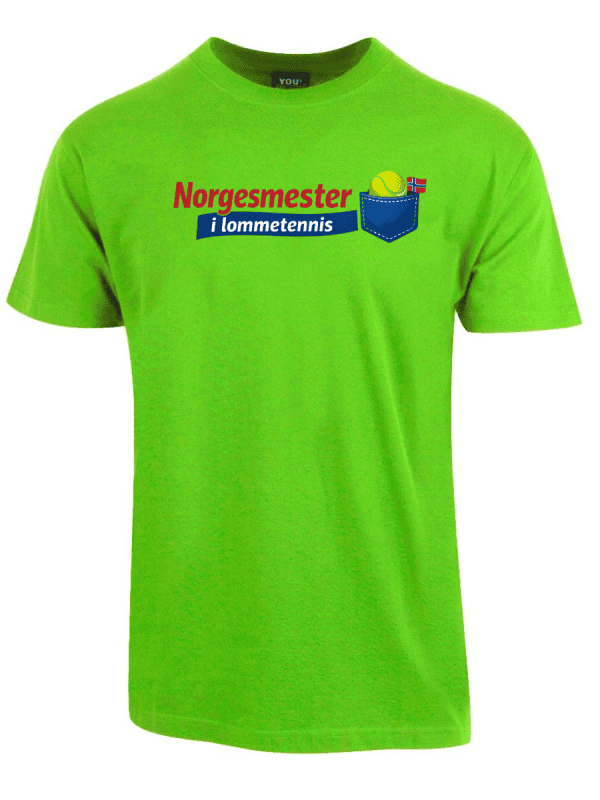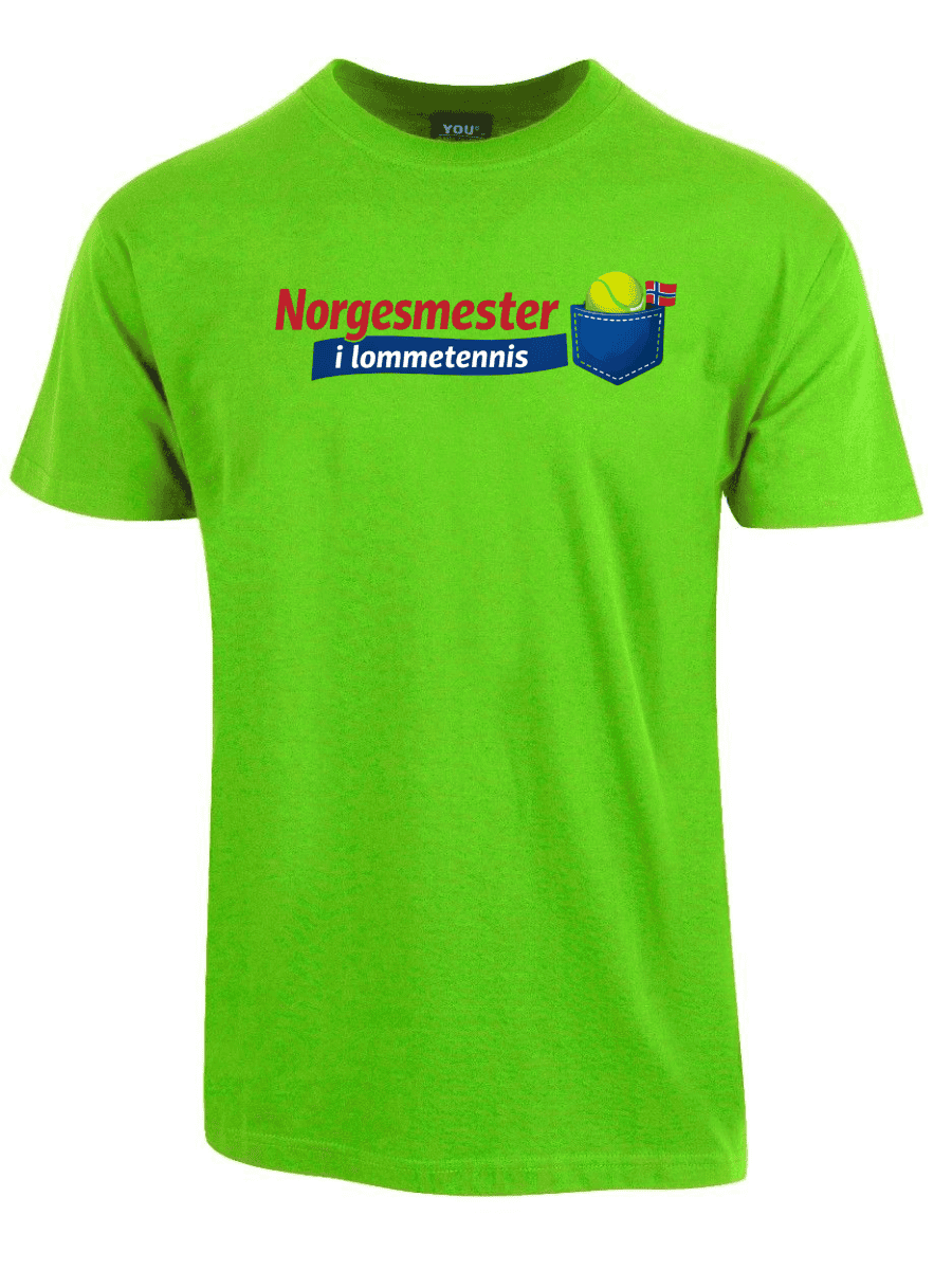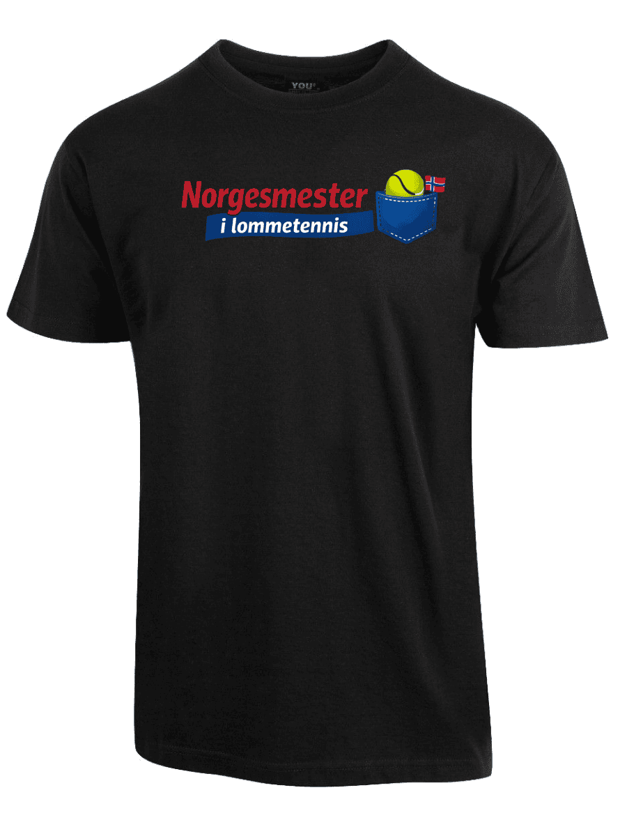 Vi snakker ikke om faktisk tennis her. «Norgesmester i lommetennis» t-skjorten er en frekk referanse til den aktiviteten de fleste driver med i ensom majestet, men som ingen snakker høyt om. Dette er humor for de som ikke er redde for litt frekke vitser og som setter pris på dobbeltbetydninger som får folk til å le – eller rødme.