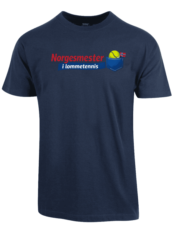 Kjenner du noen som ville le høyt av denne? Som ikke er redd for frekk humor? Som har selvironi nok til å gå rundt med dette budskapet? Da er «Norgesmester i lommetennis» t-skjorten den perfekte gaven. Også flott som bursdagsgave til kompisen med god humor, polterabend-gave, eller bare til deg selv når du vil ha en t-skjorte som garantert får reaksjoner.