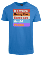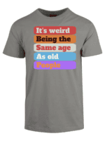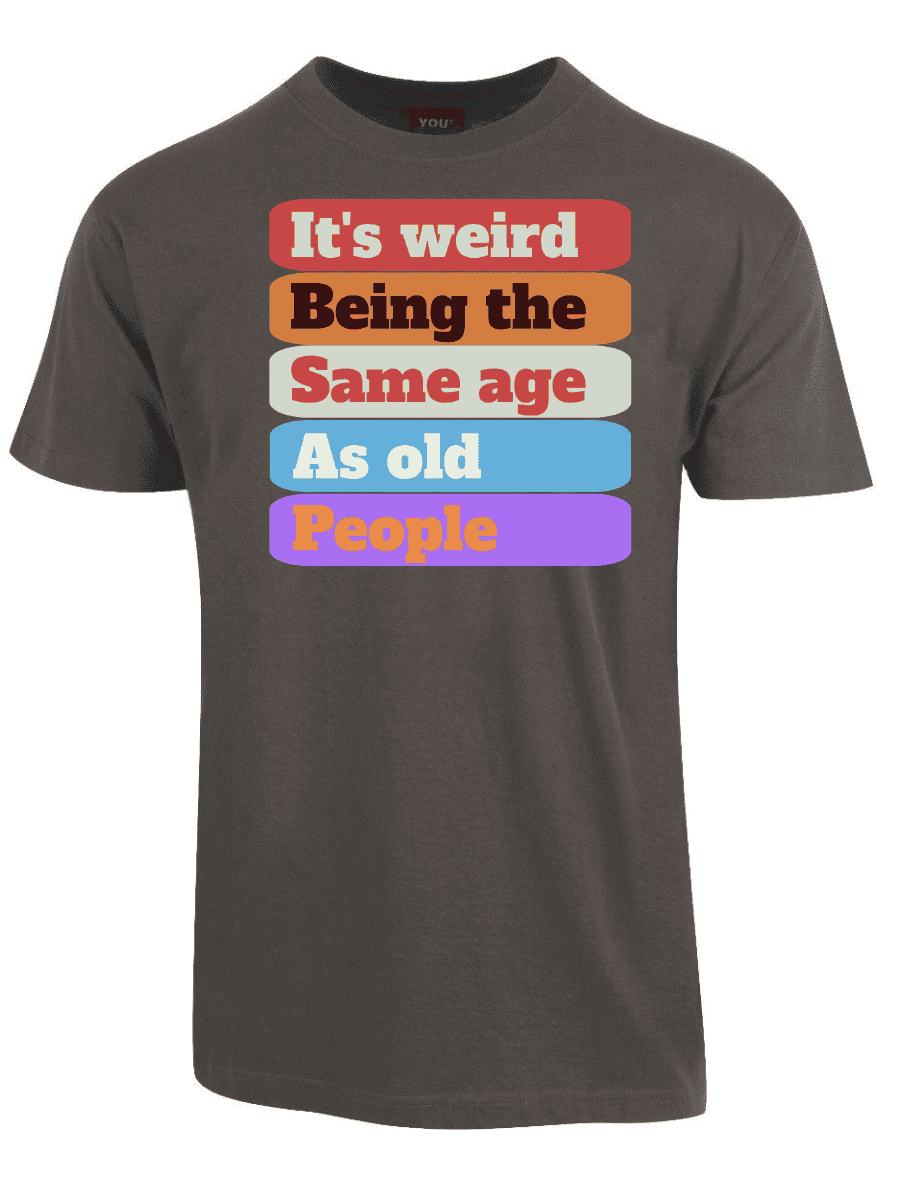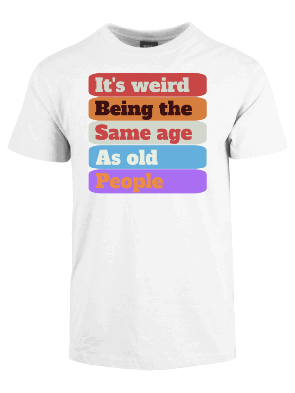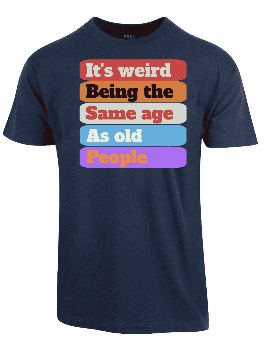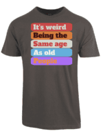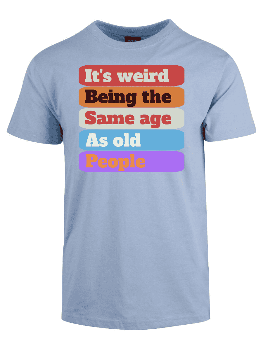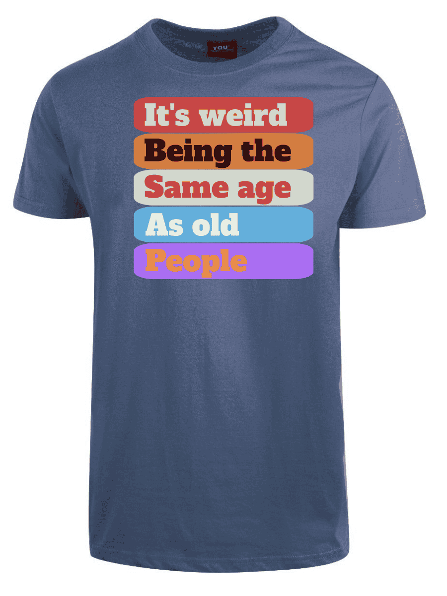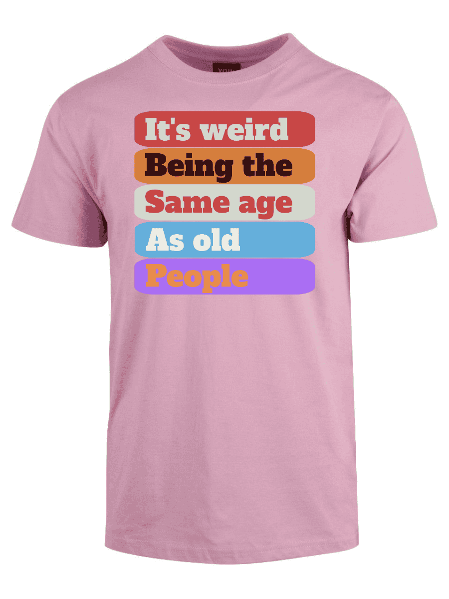 Denne T-skjorten har et finurlig design som hyller det unike ved å være på samme alder som gamle mennesker.