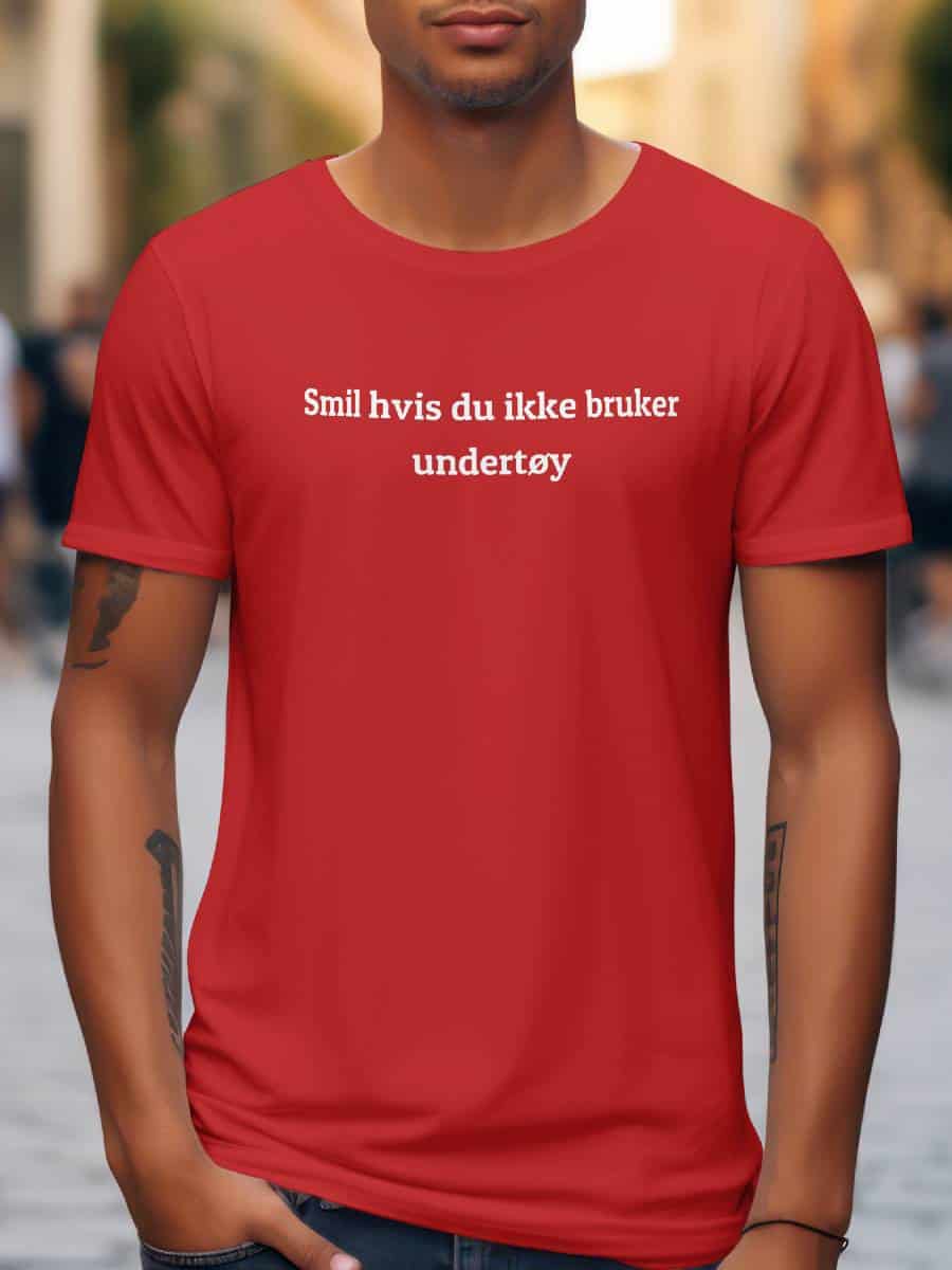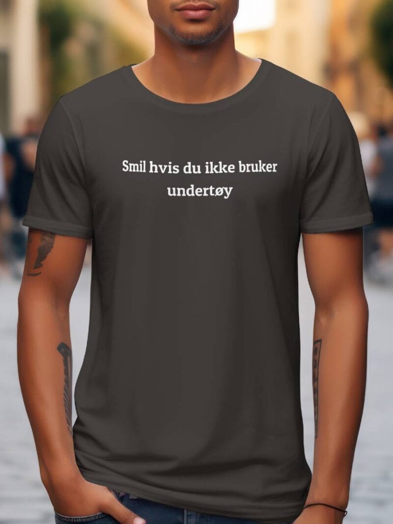 T-skjorte med teksten «Smil hvis du ikke bruker undertøy»