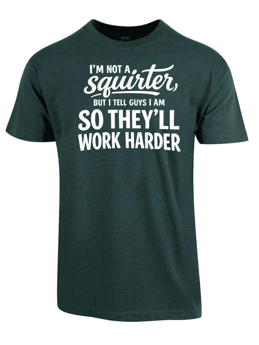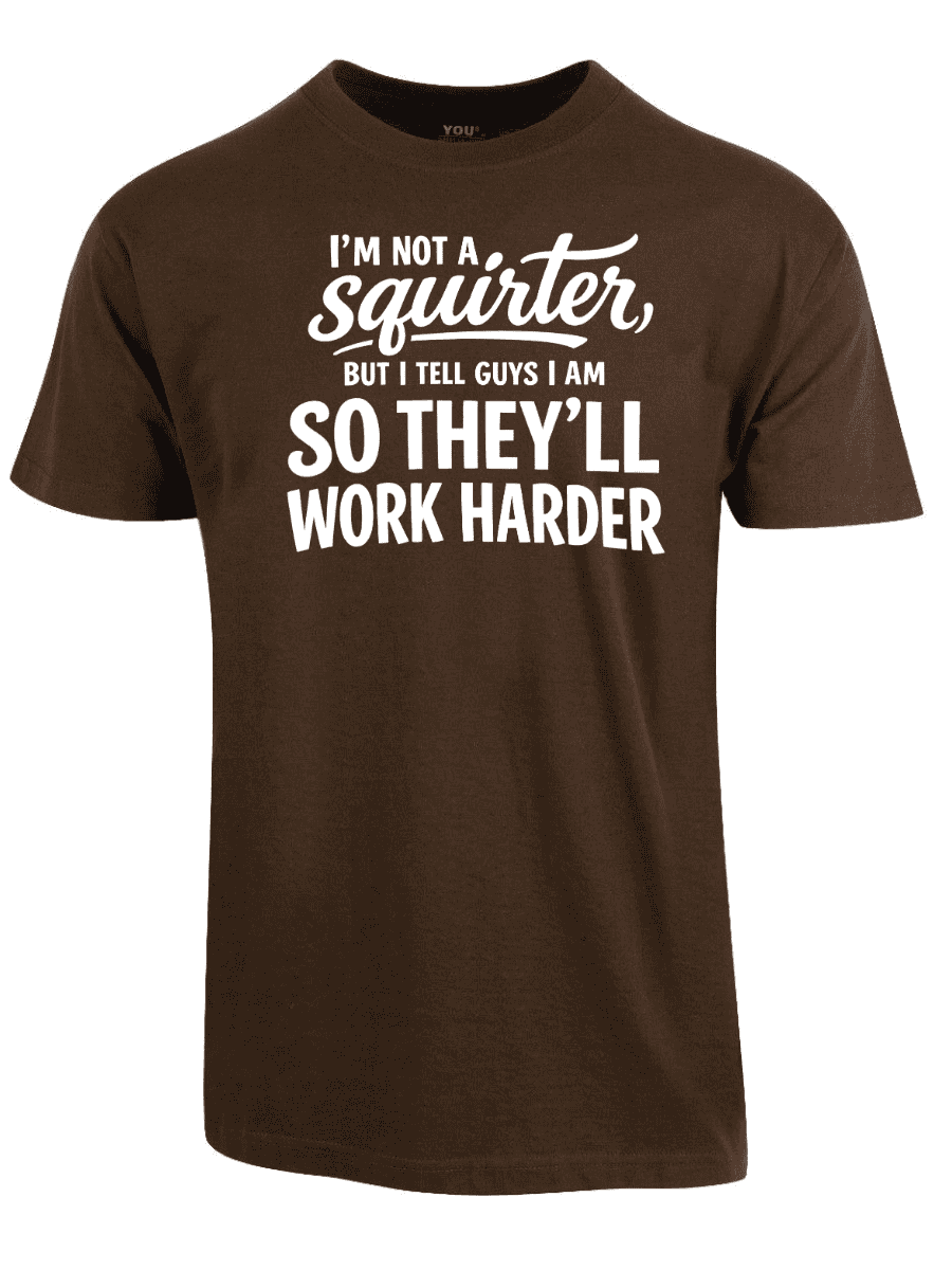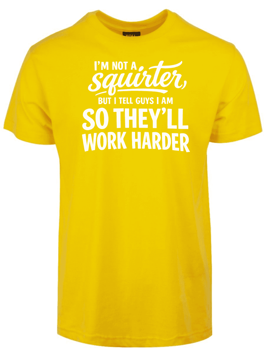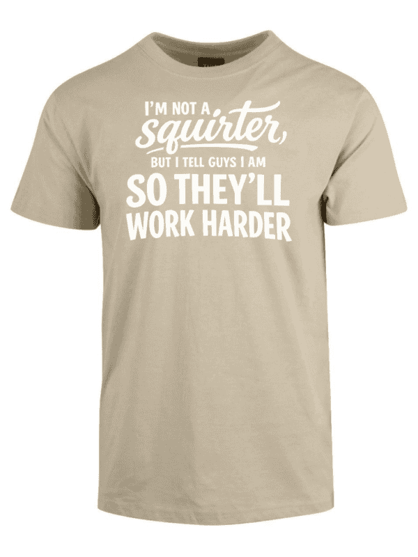 Noen løgner er det verdt å leve med. I’m not a squirter, but i tell guys i am so theyll work harder er t-skjorten for deg som setter resultater over sannhet – og ikke er redd for å si det høyt.
