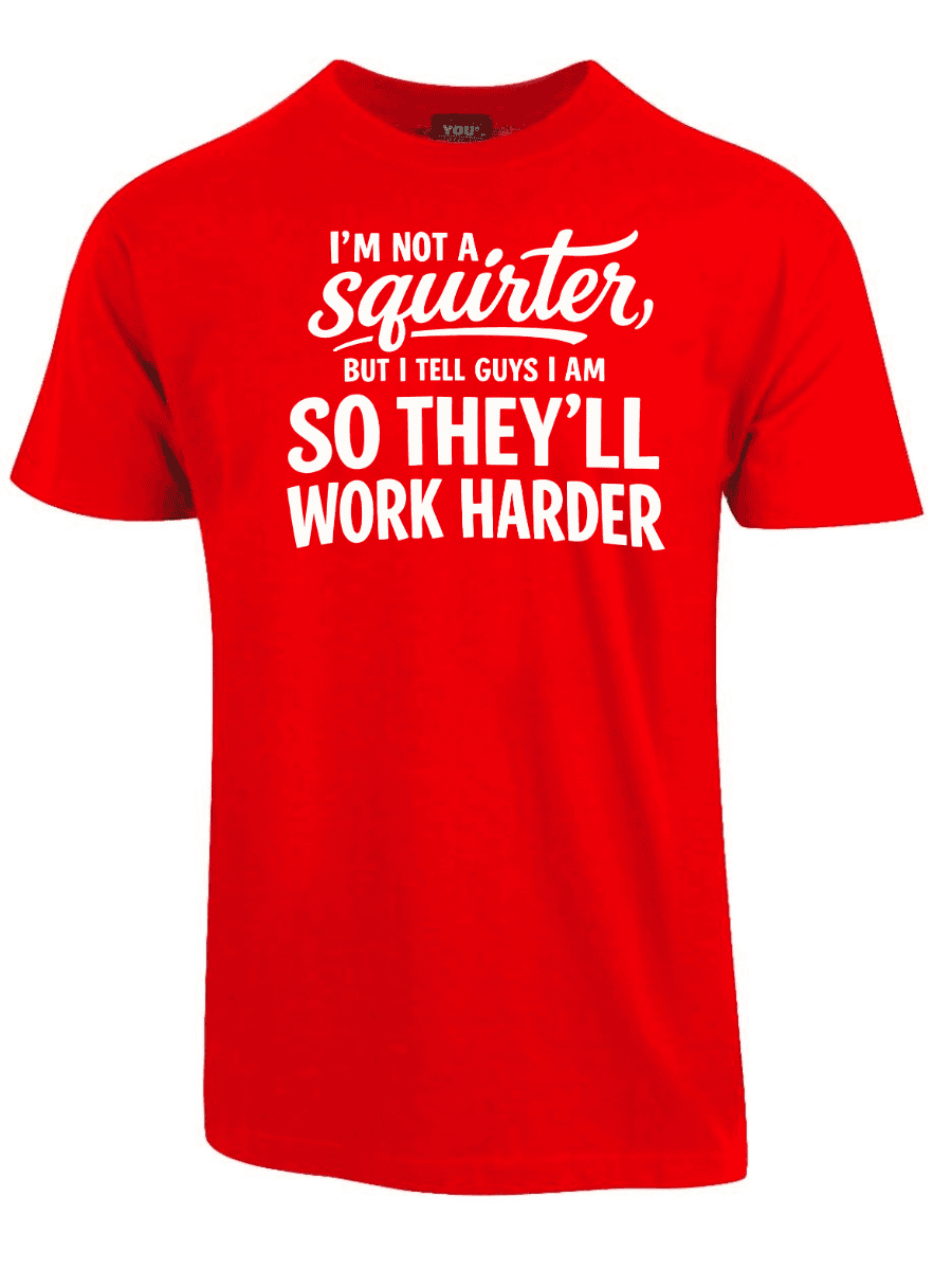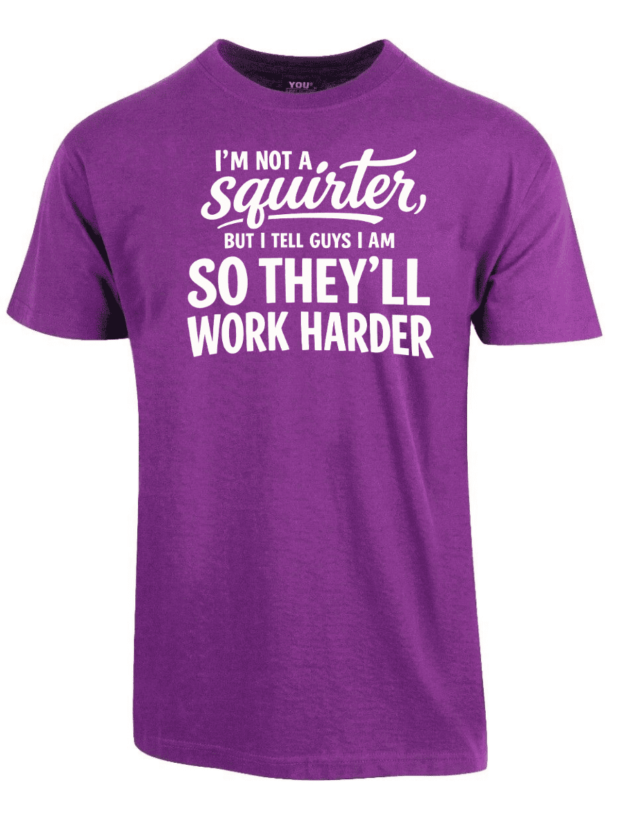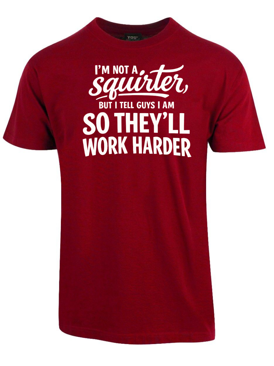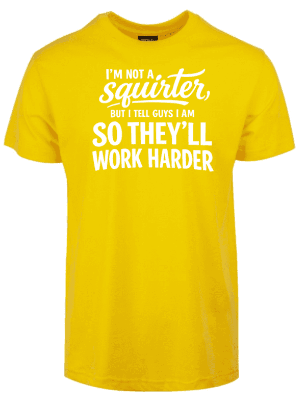 Noen løgner er det verdt å leve med. I’m not a squirter, but i tell guys i am so theyll work harder er t-skjorten for deg som setter resultater over sannhet – og ikke er redd for å si det høyt.