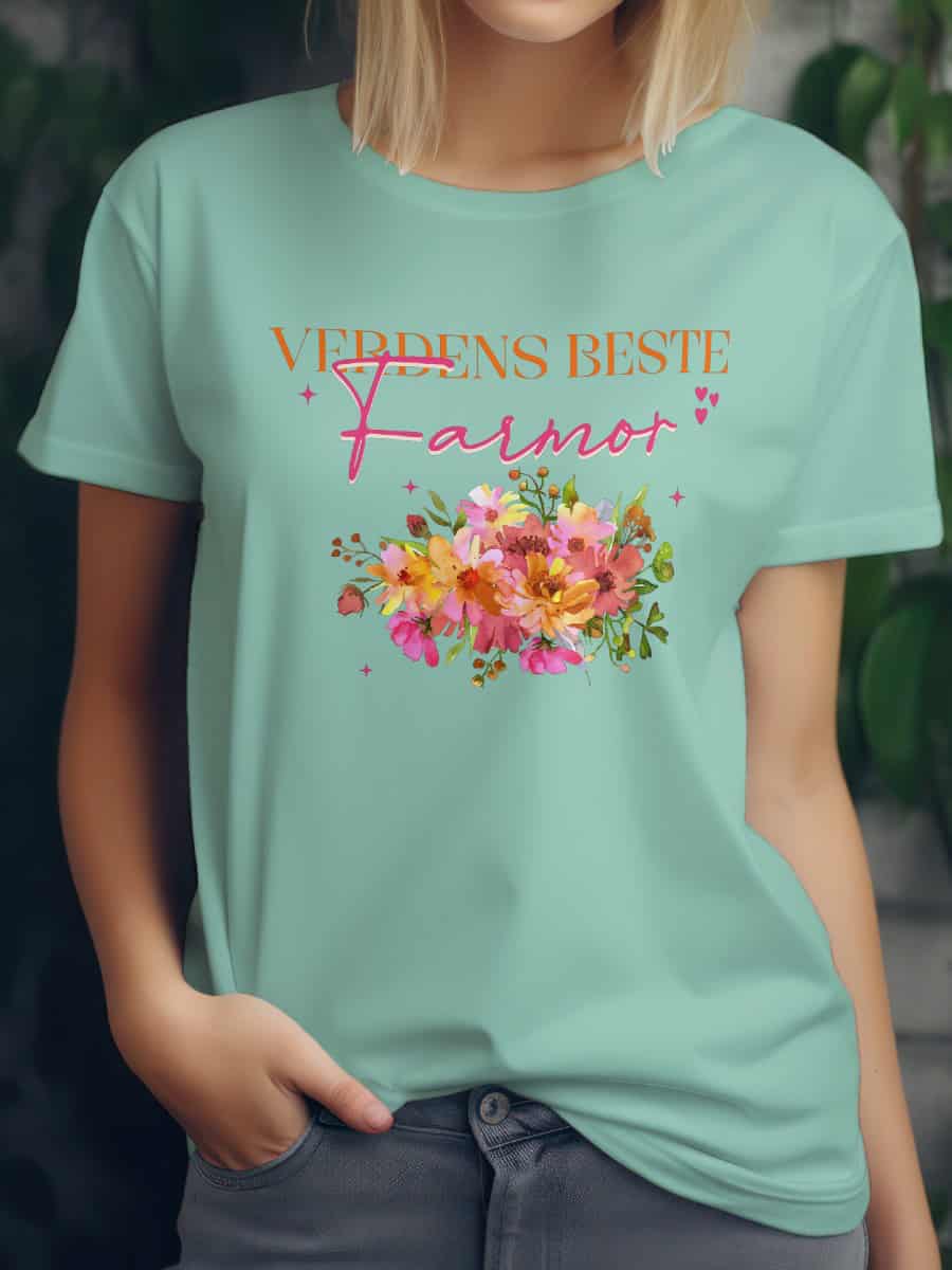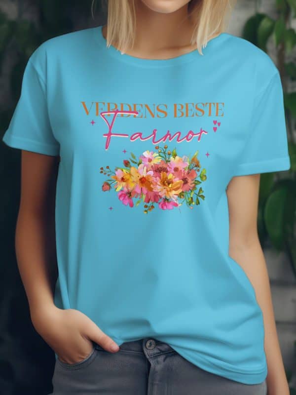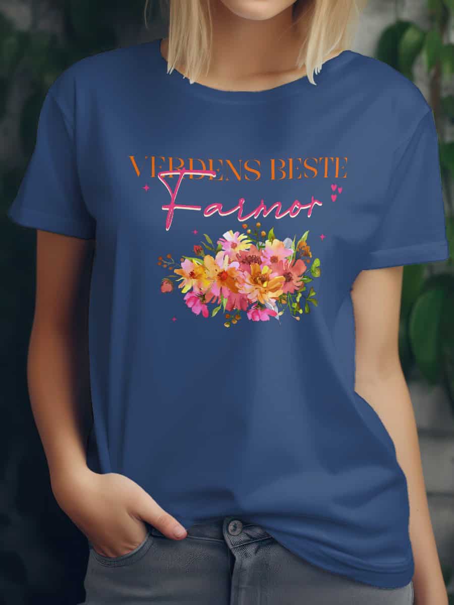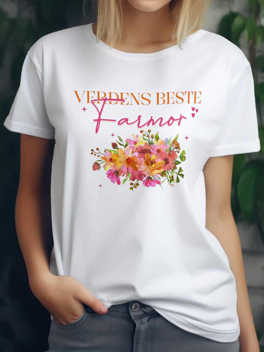 Med Verdens beste farmor T-skjorte får du en gave som sier det som trengs – uten blomster, kort eller lange taler. Den finnes i mange størrelser og farger, slik at du kan velge mellom klassisk hvit, elegant grå, livlig rød eller varm rosa – akkurat som farmor selv, allsidig og full av personlighet.
